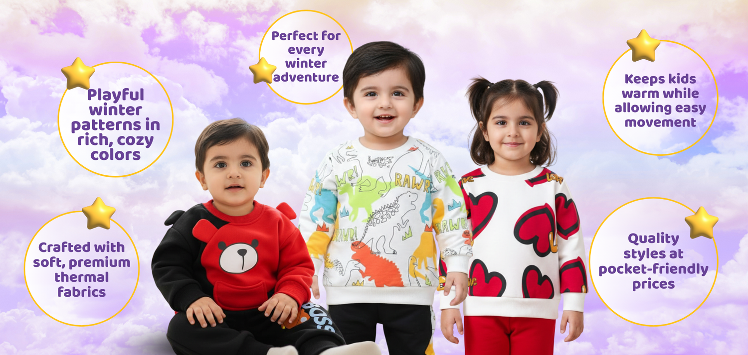 Explore our delightful range of kids' clothing! Our collection features a perfect blend of playful designs and modern styles, all crafted with exceptional quality and meticulous attention to detail. Each piece is designed for comfort, durability, and fashion, ensuring your little ones look stylish and feel great on every adventure. From vibrant everyday wear to charming special occasion outfits, our collection has everything you need to keep your children looking their best while having fun.