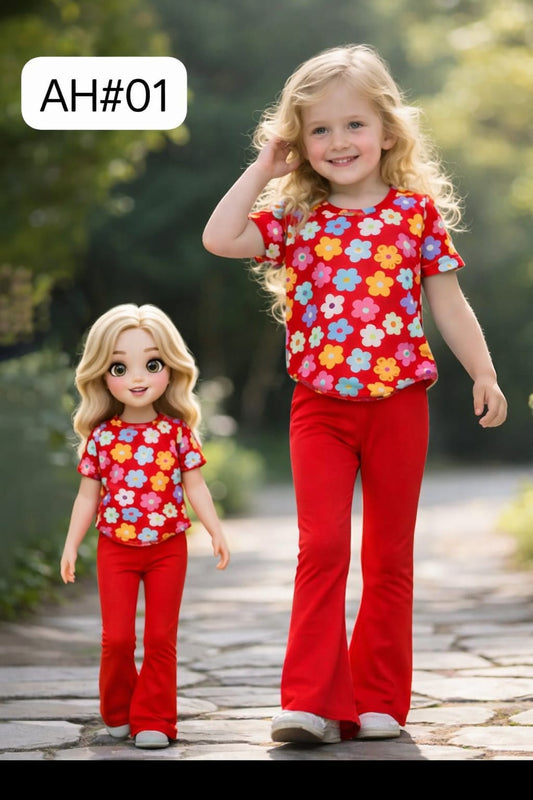 Sunshine Bloom Girls 2-Piece Floral Outfit Set – Red