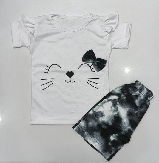 Cute Kitty Bow Girls 2-Piece Outfit Set