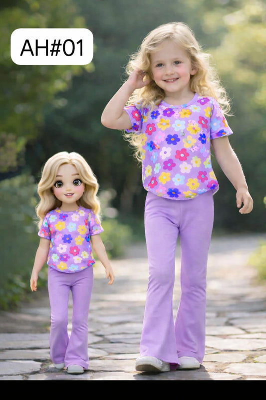 Lavender Bloom Girls 2-Piece Floral Outfit Set – Purple