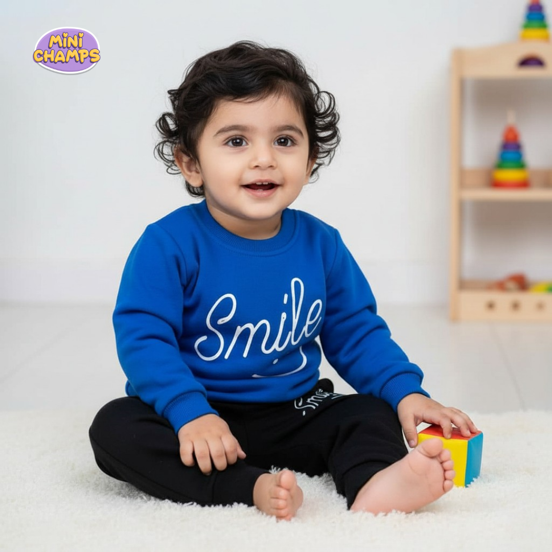 Smile Printed Sweatshirt & Trouser Set - Blue