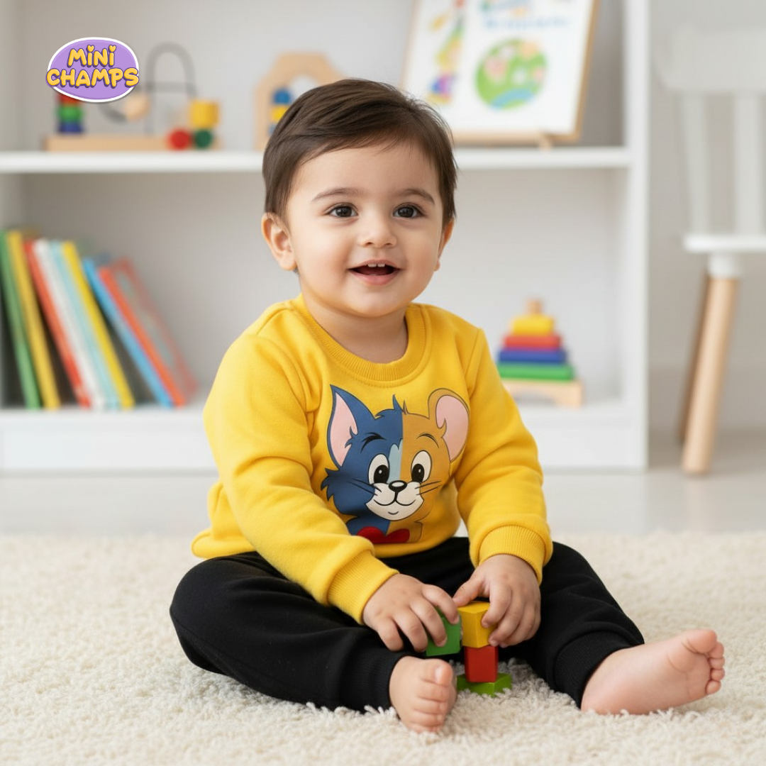 Tom and Jerry Printed Sweatshirt Set - Yellow