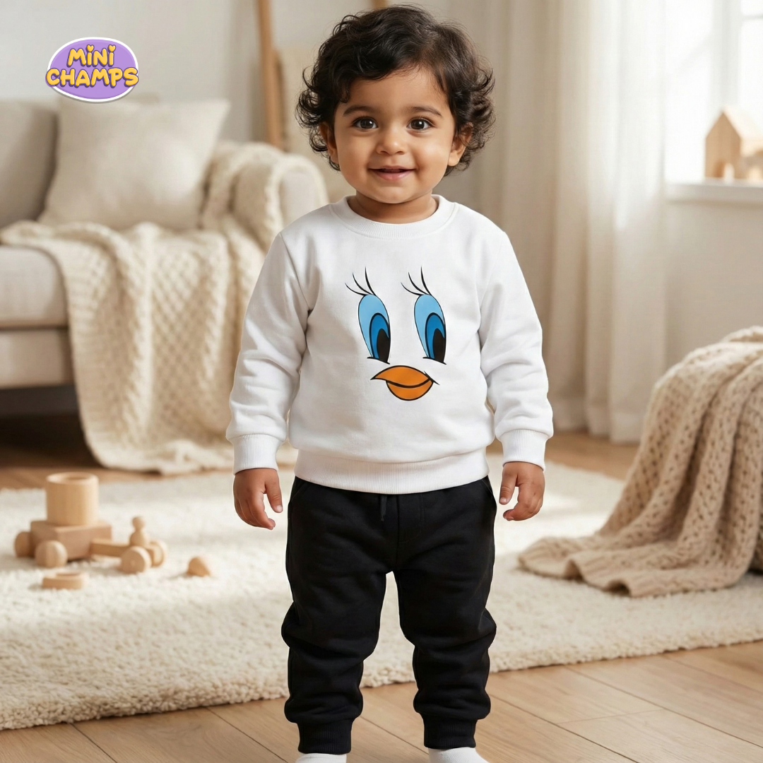 Tweety Face Printed Sweatshirt Set - White